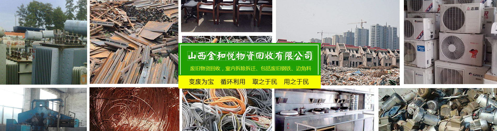 山西金和悅物資回收有限公司是一家從事廢舊物資回收,整廠設(shè)備打包回收的公司。主要可回收社會各行各業(yè)的廢舊物資,包括廢鋼廢鐵/廢銅廢鋁/稀有金屬/廢不銹鋼/廢舊機械設(shè)備/電線電纜/電池電瓶回收以及廢舊廠房整體設(shè)備打包回收。免費上門估價,現(xiàn)場付款,可帶工人上門,清理庫房。我公司立足于環(huán)保,利用閑置的資源,變廢為寶,循環(huán)利用,取之于民,用之于民,讓有效的資源得到合理的利用,充分體現(xiàn)它的價值。公司堅持“以質(zhì)量求生存,以信譽求發(fā)展”的基本原則,為山西及周邊地區(qū)的企業(yè)、單位和個人提供安全、快捷的服務(wù)。歡迎各界有廢料或需要拆除的人士來電洽談業(yè)務(wù)!